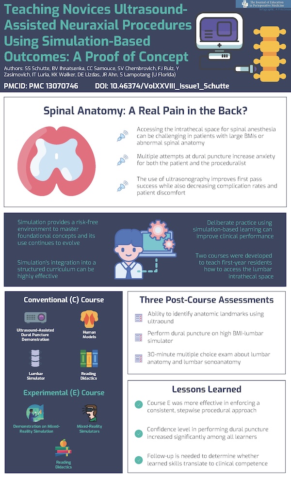 Submit Your Manuscript to JEPMSubmit Your Manuscript to JEPMInstructions for AuthorsISSN: 2333-0406 Editorial BoardPhillip S. Adams, DO Mary E. Arthur, MD, MPH, FASE, FASA Allen Friedman, MD John D. Mitchell, MD Current IssueJANUARY – MARCH, 2026 | ISSUE I | VOLUME XXVIIIBrief Reports ConsultCraft: Reimagining Perioperative Education With AI-Based Adaptive Case DiscussionsLauren K. Buhl, MD, PhD; Kate Salotto, MD; Thomas Thesen, PhD Practical Insights From a Pilot Program: Off-Cycle Residency Start During the COVID-19 PandemicLogan Jones, MD, FACP; David Jones MD, MBS, MCR; Joyce Hollander-Rodriguez, MD; Amy K. Miller Juve, EdD, MEd; Maya Severson, MPH; Allison Fraser-Brewer; Lalena M Yarris, MD, MCR Articles Association of the Change in USMLE Step 1 Scoring With Research Output Among Applicants to Anesthesiology Residency Programs: A Retrospective Observational StudyAshna Bhardwaj, BS; Pratima Bajaj, BS; Karim Rifai, BS; Akshar Patel, BS; Arjun Bhatt, BS; Ali Abolhassani, BS; Jack McClain, BS; Asim Ahmed, BS; Caryl Bailey, MD; Mary Arthur, MD, MPH, FASE, FASA PACU Outcomes Across Anesthesiology Resident Training Levels: A Retrospective Cohort StudyHayden B. Jefferies, DO; Landon C. Rosckes, BS; David A. Hundley, DO; Travis H. Markham, MD A Comparative Analysis of Human and AI-Augmented Feedback in Anesthesiology EducationDaniel J. Rosenkrans, MD; Katherine B. Owensby, MPhil; Justin C. Magin, BS; Morgan N. McCain, BS; Emily G. Teeter, MD; Samuel N. Blacker, MD; Fei Chen, PhD, MEd, MStat Teaching Novices Ultrasound-Assisted Neuraxial Procedures Using Simulation-Based Courses: A Proof of ConceptSoleil S. Schutte, MD; Barys V. Ihnatsenka, MD; Christopher C. Samouce, PhD; Svetlana V. Chembrovich, MD; Federico Jimenez Ruiz, MD; Yury Zasimovich, MD; Isaac T. Luria, MD; K. Karisa Walker, MD, MEd; David E. Lizdas, BS; J. Rachael Ahn, PhD; Samsun Lampotang, PhD, FSSH, FAIMBE Current Trends in Pre-Residency Research Productivity Among Applicants Who Successfully Matched Into Top Anesthesiology Residency ProgramsSharwani Kota, BS; Nivetha Srinivasan, MD; Colette B. Gazonas, MD; Dhiraj Sibala, MD; Damanveer Singh, MD; George A. Popa, MD; Jean D. Eloy, MD The Development of a Basic Procedural Skills Checklist for a Simulation-based Mastery Learning Curriculum for Ultrasound-guided Interscalene Peripheral Nerve Blocks for Novice ResidentsJessica J. Weeks, MD, MEHP; Liting Chen, MD; Vicente Garcia Tomas, MD; Sarah M. MacLyman, MD, MSGH; Elaine R. Cohen, MEd; Deborah Schwengel, MD, MEHP, FASA; Jeffrey H. Barsuk, MD, MS Past VolumesView Past Volumes of JEPM |
